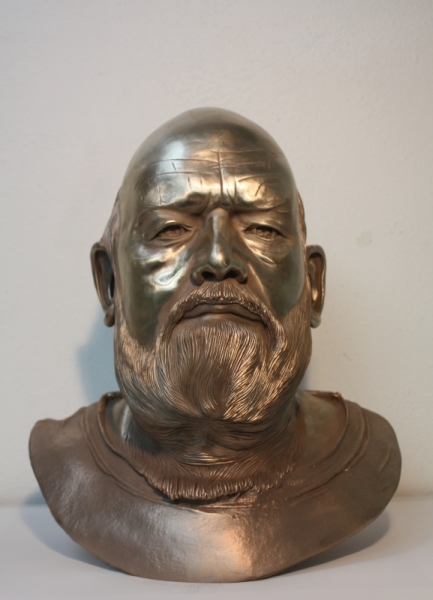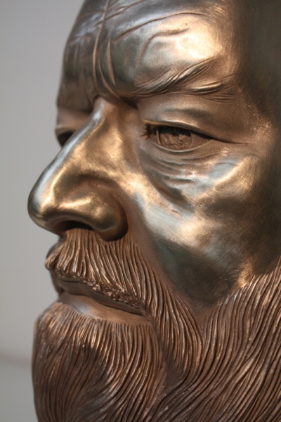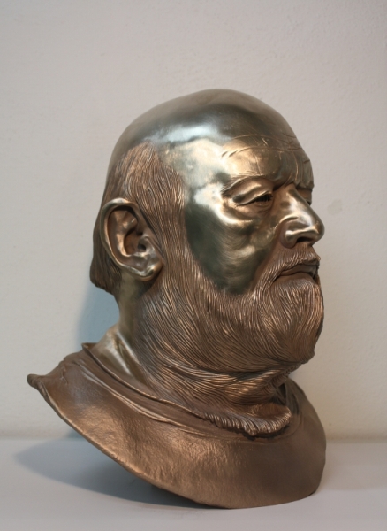 Die Bronzeplastik zeigt den Kopf von Eschers Ehefrau Jette. Die Skulptur wird in zwei Segmenten im Wachsausschmelzverfahren hergestellt und anschließend patiniert.