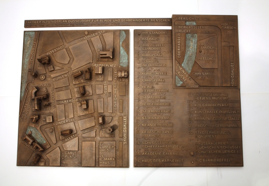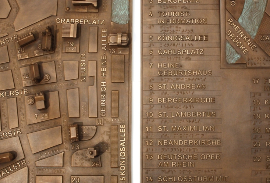 Von der Deutschen Blindenstudienanstalt; Standtort: Düsseldorf Rathausplatz; Gesamte Installation 98 x 67 cm