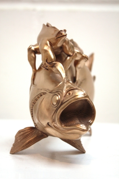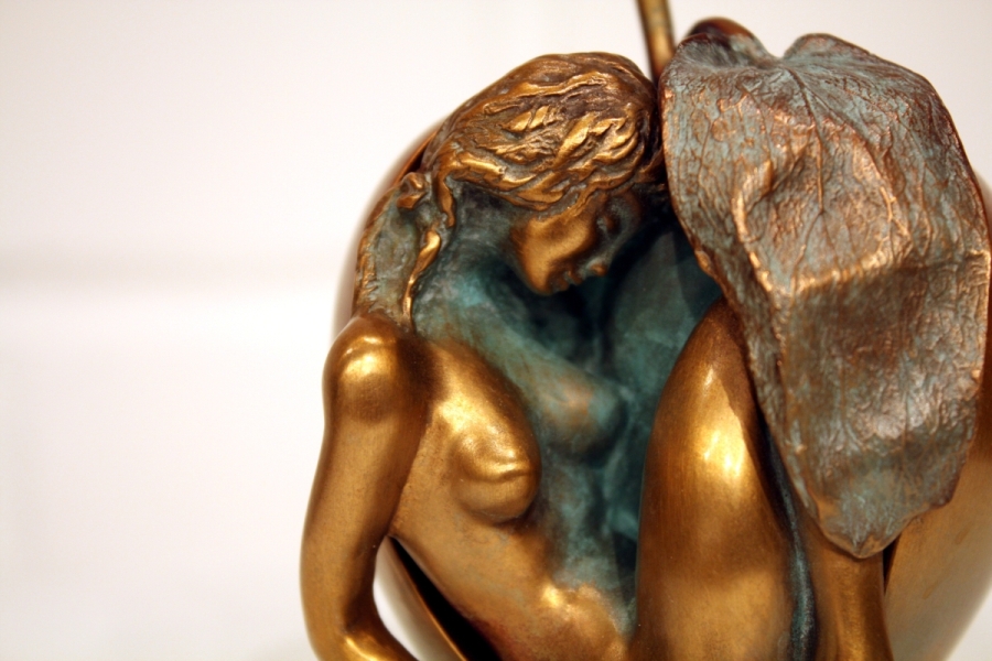Die kleinen Details welchen besonders am Blatt zu sehen sind, zeigen welche ein Detaillierungsgrad im Wachsauschmelzverfahren verwirklicht werden kann. Ebenso kommt bei diesem Objekt die mehrfarbige Patina schön zur Geltung.