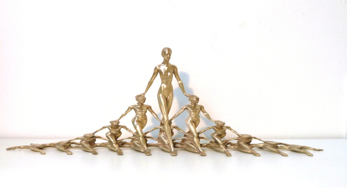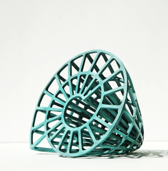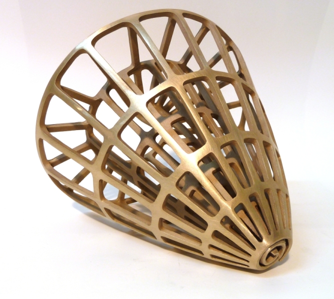Neue Technologien ermöglichen neue Kunst. Eine am Computer erstellte Skulptur, welche anschließend durch maschinelle Herstellung plastisch wird. In Bronze gegossen und anschließend patiniert.