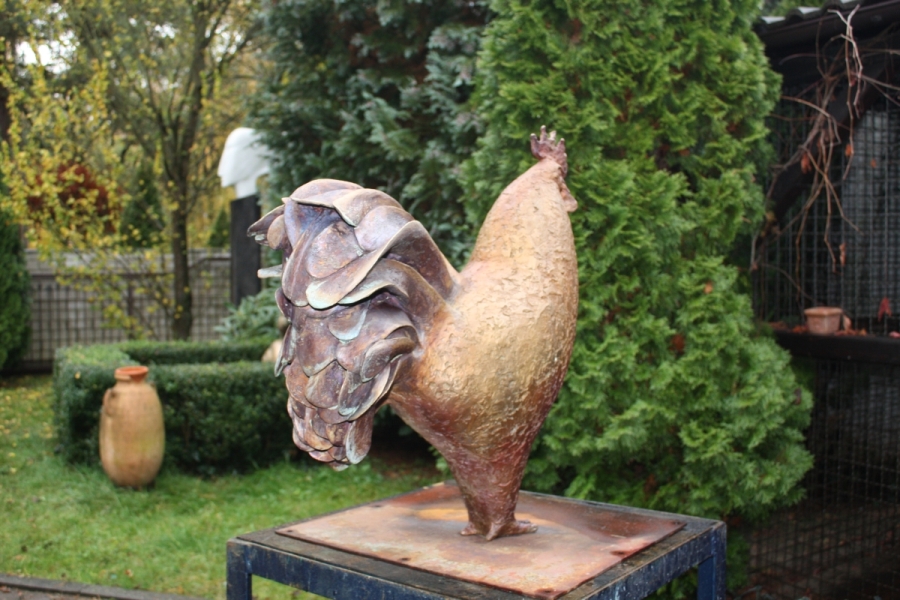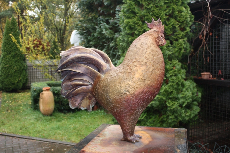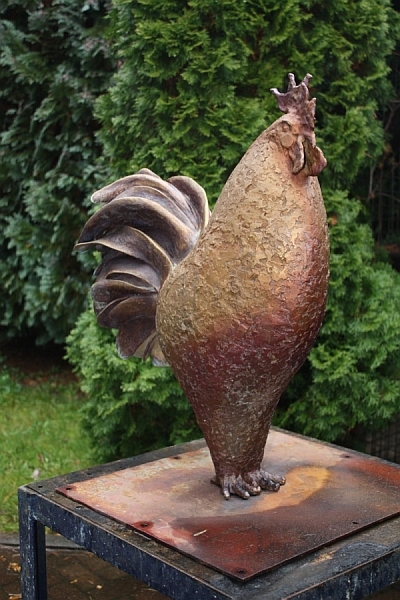 Der Hahn wurde in verschieden Farben patiniert. Hierdurch konnte der Ausdruck der Skulptur noch weiter verstärkt werden.