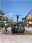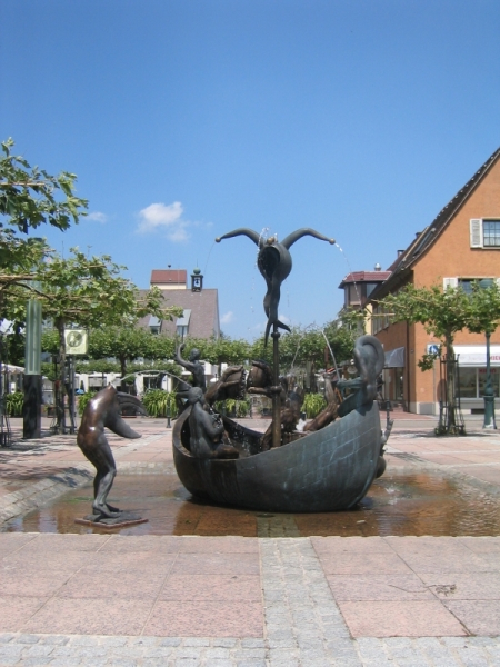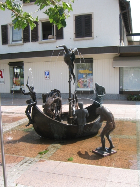 Das Narrenschiff besteht aus neun Skulpturen welche sich teils innerhalb eines bronzenen Bootes befinden. Verschiedene Skulpturen sind mit einen Leitungssystem für Wasserspiele versehen worden.